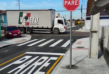 Instalação de placas de regulamentação, advertência e orientação que ajudam a evitar acidentes e guiar o trânsito com segurança.